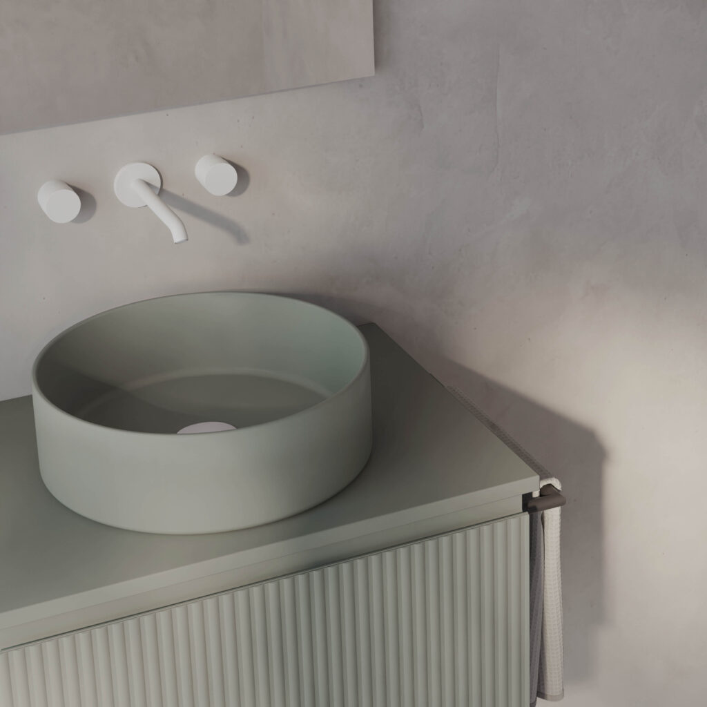 Ceramic countertop washbasin matt finishes: Cotton, Black, Sand, Piombo, Mineral Green, Grey and Blue Ocean.